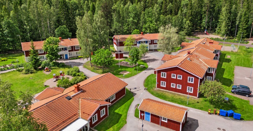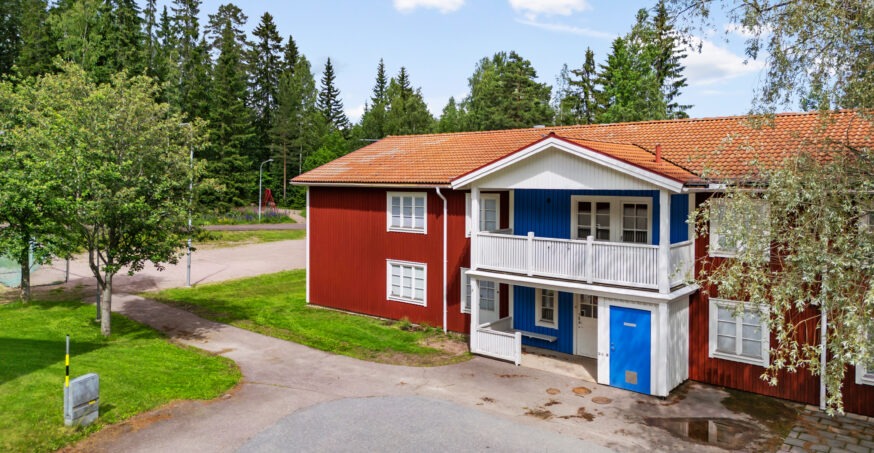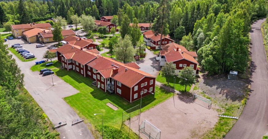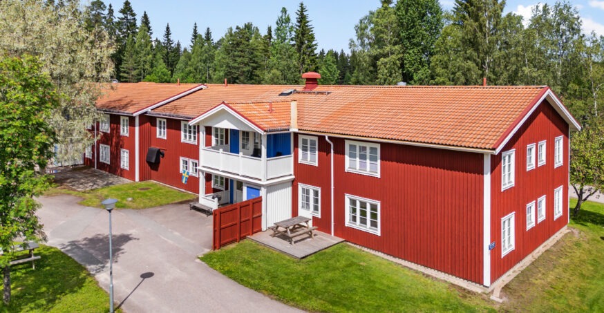 I Garpenbergs centrum finns det 36 st lägenheter från 1,5 rok till 5 rok. På nedre botten är det uteplats till lägenheterna och på andra våningen har man en gemensamhetsbalkong.